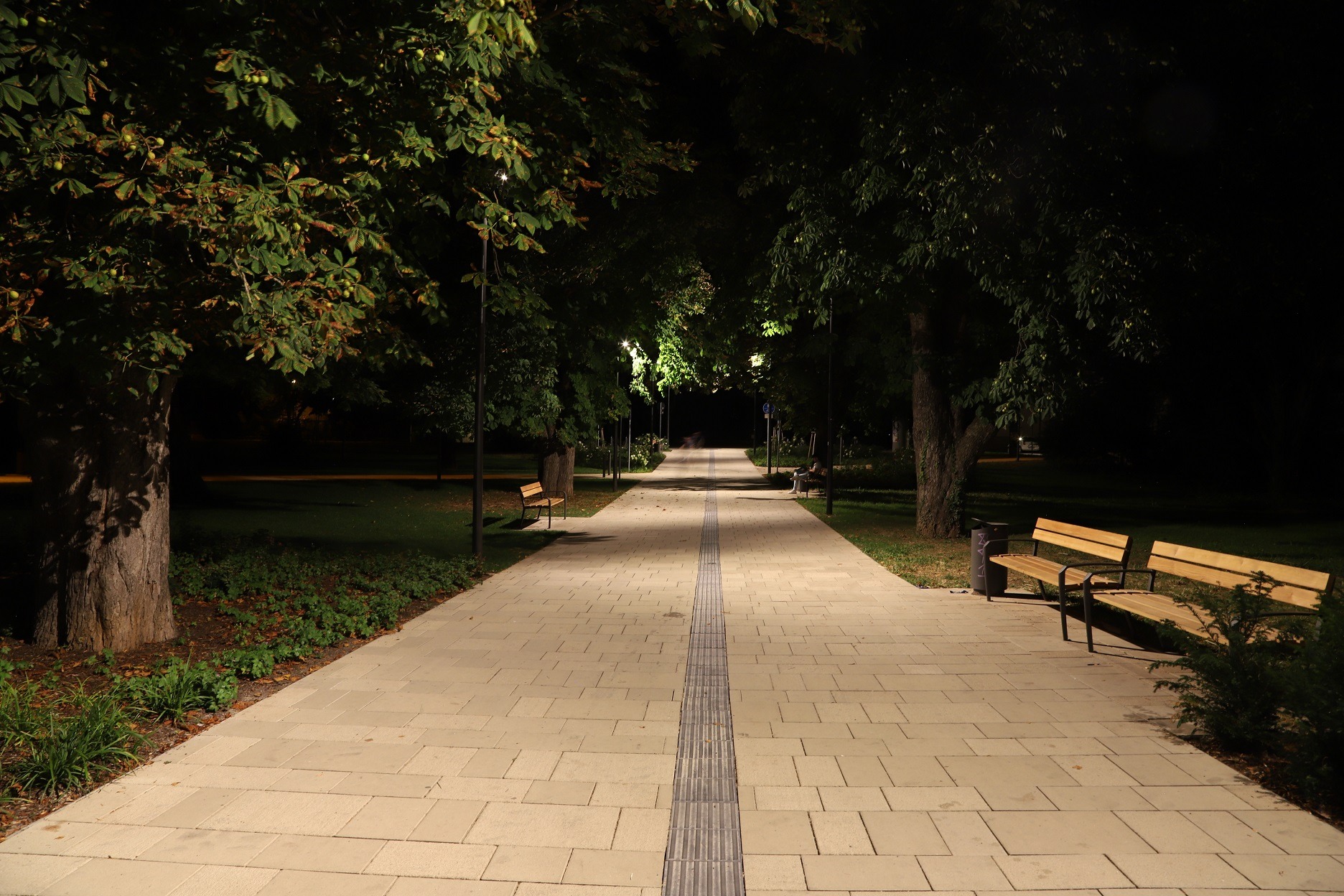 Etwas Besonderes ist die ungewöhnlich warme Lichtfarbe im neuen Anlagenpark. Sie heißt „Amber“, denn sie ist bernsteinfarben bei 1800 Kelvin. Den Blau-Anteil im Licht ist dabei deutlich reduziert. Angenehm fürs menschliche Auge, vor allem aber auch gut für die Umwelt, für Insekten und Fledermäuse. Denn grundsätzlich nehmen Tiere speziell den Blau-Anteil im Licht wahr, und der kann ihr natürliches Verhalten bei Nacht stören. Senkt man den Blau-Anteil, stört das deutlich weniger. So gelingt ein Spagat: Der Park ist dunkel genug für die Tiere und die Natur, aber hell genug, damit Menschen sich sicher fühlen.